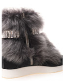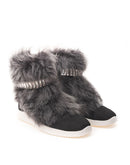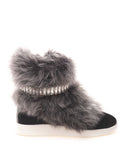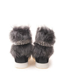 Black sneaker with Fur and Crystals Giuseppe Zanotti. Round toe, black technical fabric/suede, contrasting white rubber sole. Covered with faux fur with crystal band around the shoe. Side zipper. Composition:100% Leather/Eco Fur-Sku inside:24MG156