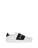 Givenchy’s Urban Street Sneakers are slip-ons made of smooth calfskin leather, featuring an embossed logo on the back and enhanced by a contrasting elastic band with Givenchy Paris lettering on the instep. Equipped with a padded ankle for maximum comfort, they feature a contrasting leather heel and printed logo on the inside, combining modern design and functionality.
