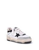 The Golden Goose Forty2 Sneakers are inspired by the glory days of American basketball, reinterpreted with a contemporary aesthetic and exceptional artisanal construction. The chunky low-top silhouette features micro-perforated inserts and 3D textured effect details, such as the black TPU star and the black leather back insert. The design is completed by the coordinated heel tab, the grey piping, the ice grey suede toe and the white laces with a vintage effect, for a bold and sophisticated look.