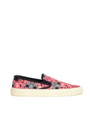 Venice slip-on in pink cotton canvas with allover print, white rubber sole, round toe, black leather back tab with logo. Printed logo on the back of the sole. Sole height: 3 cm. Composition: 100% Cotton, leather interior.