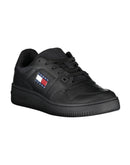 Step into the world of sustainable luxury with these bold TOMMY HILFIGER sneakers, perfect for the eco-conscious fashionista. Featuring a sophisticated blend of materials and trendy contrast details, these lace-up sports shoes proudly showcase the iconic TOMMY logo, all crafted from 100% recycled polyester for a chic yet responsible choice.