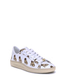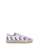 Valentino Garavani Royco leather Sneakers with round toe and front lace-up closure, embellished with a dog print that gives an original and distinctive touch. The heel is decorated with the brand’s logo, while the contrasting flat sole adds a contemporary element to the design. The model is completed by the logoed insole, for a perfect mix of style and comfort.