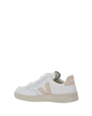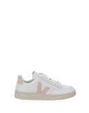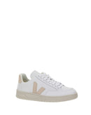 Calfskin V-12 Sneakers by Veja, lace-up front closure, heel counter with contrasting iconic brand monogram, round toe on front, contrasting iconic brand logo on side panels.