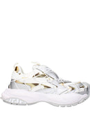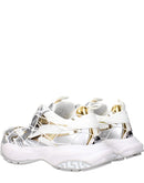 The product with MPN 10163801A115096W690 and code F84049 fabric in white is a sneakers designed by Versace. It has features like front logo, side logo, back logo.