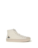 Plimsoll Sneakers by Vivienne Westwood, with an ankle-length design, feature a rubber-reinforced round toe and a flat sole. Made of monochrome fabric, they are completed with a lace-up front closure and the brand’s iconic logo embroidered on the side for an essential yet distinctive style.