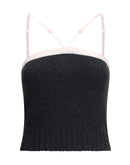 Prada’s virgin wool crop Top combines simplicity and style in an essential piece. Featuring thin, adjustable straps, it has a ribbed hem that enhances the silhouette. The triangular logo on the front adds a distinctive and refined detail.