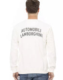 Elevate your wardrobe with the impeccable sophistication of Automobili Lamborghini’s crewneck sweatshirt. The epitome of style meets comfort, this sleek piece features the iconic shield logo emblazoned on the chest and a bold lettering print at the rear, exuding a sense of luxury with every wear. Crafted from a plush blend of cotton and elastane, each detail from the snug ribbed cuffs to the pristine white hue showcases the fine craftsmanship synonymous with the celebrated brand.