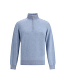 Cashmere Sweater by Brunello Cucinelli combines elegance and functionality in a garment with a refined style. Made of soft, high-quality cashmere, it features a monochrome pattern that enhances the purity of the design. The high collar is complemented by a front half-bust zipper closure, a detail that adds practicality and a sporty touch. The ribbed hem and regular fit ensure comfort and a flawless silhouette. Perfect for casual-chic looks or to add a touch of class to everyday wear.
