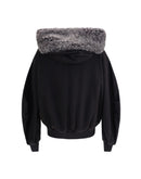 The hooded Sweatshirt by Dolce & Gabbana blends comfort and refinement, elevated by a wide fur-trimmed hood that adds a touch of elegance. A zip closure, central pockets, and pleated sleeves define a practical yet sophisticated design. Ribbed cuffs and hem add structure, while the fur placket detail completes the piece with a distinctive finish.