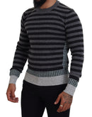 Dolce & Gabbana Black Gray Wool Logo Pullover Sweater