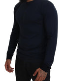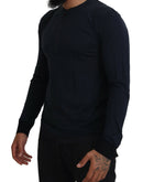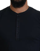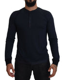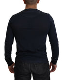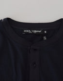 Dolce & Gabbana Blue Cotton Button Crewneck Pullover Sweater
