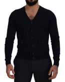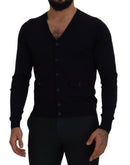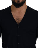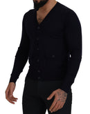 Dolce & Gabbana Blue Wool STAFF Down Cardigan Sweater