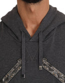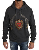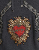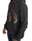 Dolce & Gabbana Gray Hooded Red Crystal Heart Gun Sweater