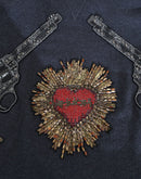Absolutely stunning, 100% Authentic, brand new with tags Dolce & Gabbana gray cotton red Crystal Heart embroidered Gun pullover sweater.