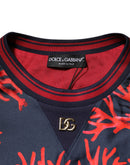 Dolce & Gabbana Navy Red Silk Coral Print Pullover Sweater