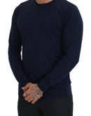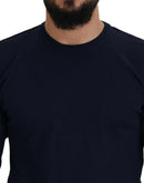 Paolo Pecora Milano Blue Cotton Crewneck Pullover Sweater