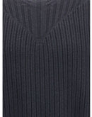 The Rick Owens Ribbed Sweater stands out for its fully ribbed design. Featuring a high neck and dropped shoulders, it offers a modern and comfortable silhouette.