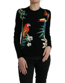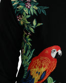 Dolce & Gabbana Black Bird Wool Long Sleeve Cardigan Sweater
