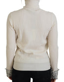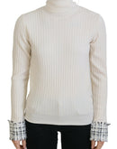 Dolce & Gabbana Ivory Turtleneck Distressed Cuff Pullover Sweater