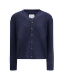 Margiela’s Wool Cardigan represents refined essentiality reinterpreted through delicate texture. With a V-neckline and knit made from a soft yarn, this garment lends depth to a minimalist shape. Ribbed edges define the line with elegance, while tone-on-tone buttons add understatement. On the back, the characteristic four stitches, an unmistakable symbol of Maison Margiela, complete the design.