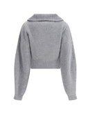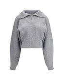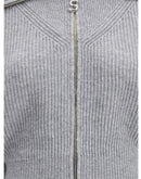 Sportmax’s gray wool and cashmere blend Calipso cardigan features a high collar and metal zipper. It features wide dropped-shoulder sleeves, a narrower waist, and a regular fit for a soft, contemporary look.