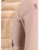 The padded zip-up Sweatshirt from the Moncler Grenoble Women’s collection is designed to provide warmth and comfort even in the most demanding conditions. Crafted from stretch jersey with padded nylon laqué front panels, it seamlessly combines technical performance with refined style. A high neck with snap button closure and water-repellent zip ensure protection against the elements, while zipped pockets and elastic jersey cuffs with tricolor trim highlight its sporty yet elegant appeal. Perfect for skiing, snowboarding, trekking, and hiking, it is the technical layer that merges functionality with contemporary design.