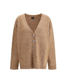 Bouclé fabric Cardigan with rhinestones by Pinko, Long-sleeved cardigan with a comfortable, wrap-around silhouette. The soft bouclé fabric is studded with rhinestones that embellish the design. The hem and cuffs are ribbed, while the tone-on-tone brand label stands out at the back of the neck.