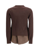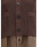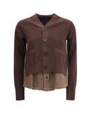 Sacai’s Cardigan reinterprets a wardrobe classic with an unexpected, contemporary twist. Made of knit with a front button closure, it features two welt pockets on the front and ribbed trim on the cuffs and hem. The distinctive detail is the applied denim panel on the bottom, which creates a textural contrast and gives the garment a hybrid, modern attitude. A cardigan that blends elegance and experimentation, perfect for looks with an urban spirit.