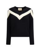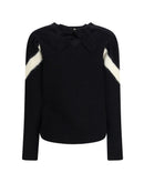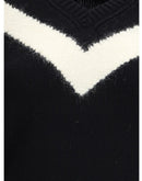 The Valentino Garavani Wool Sweater combines essential lines with couture-inspired details. Featuring a refined V-neckline, the design is elevated by a statement bow at the back, adding a feminine touch to the silhouette. Finished with cuffed sleeves and a metallic V Logo detail, this sweater blends minimal elegance with iconic sophistication.