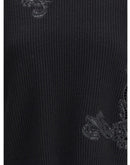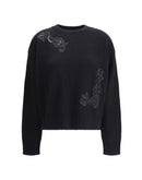 Versace’s Barocco Leaf Embroidered Sweater is an elegant knitted wool top embellished with a refined Barocco Leaf motif thread embroidery, enriched with cut-outs and tone-on-tone micropaillettes. The design features a classic crew neck, long sleeves and ribbed edges, offering a comfortable fit with a touch of sophisticated opulence typical of the house.