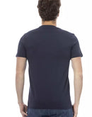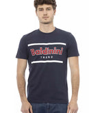 Steeped in the luxurious yet edgy ethos of Baldinini Trend, this striking blue T-shirt infuses your wardrobe with a dose of Italian sophistication. Crafted with the finest cotton for unparalleled comfort, it sports a bold front print that captures attention, making a statement with its artful aesthetic and crisp round neckline. Perfect for the fashion-forward male who’s not afraid to stand out.