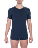 Elevate your wardrobe with Bikkembergs’ ‘Bi-pack Crew Neck’ T-shirts, a dynamic duo tailored for the modern man. Expertly crafted with a fusion of cotton and elastane, these tees offer both supreme comfort and a sculpted silhouette. Arriving from Bangladesh, this blue set embodies the bold and trendy spirit, perfect for those who seek to stand out with effortless style. Make these your go-to staples for casual sophistication.