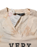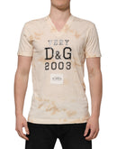 Dolce & Gabbana Beige Logo Print Short Sleeve V-neck T-shirt