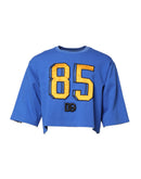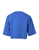 Dolce & Gabbana Blue Printed Cotton Cropped Crew Neck T-shirt