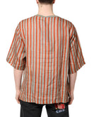 Dolce & Gabbana Multicolor Striped Graphic Linen Round Neck T-shirt