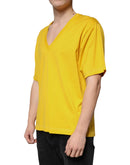 Dolce & Gabbana Yellow Cotton V-neck Short Sleeves T-shirt