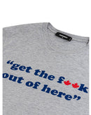 otton T-Shirt with ‘Get the f**k..’ print Dsquared2. Grey mélange cotton, crew neck, short sleeves, contrasting front print. Composition: 100% Cotton-Sku inside:24MG37