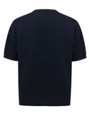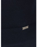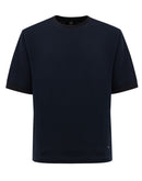 Dunhill Blue Pique Cotton T-Shirt. Contrasting black knit collar, small metal tag with logo applied on the side, regular fit