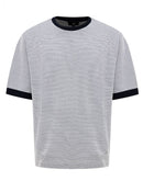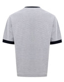 Dunhill Grey Pique Cotton T-Shirt. Contrasting blue knit collar, small metal tag with logo applied on the side, regular fit