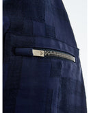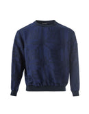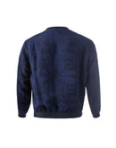 Emporio Armani crewneck sweatshirt in blue with contrasting black collar and cuffs, tone-on-tone allover geometric print, zippered breast pocket on sleeve, covered zipper on hip, relaxed fit. Composition:47% Linen, 45% Viscose, 8% Polyamide-Sku inner:23MG158-161