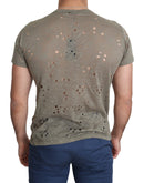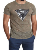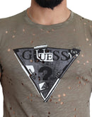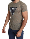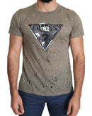 Guess Brown Cotton Stretch Logo Print Men Casual Perforated T-shirt