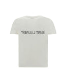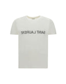 Cotton T-Shirt by Saint Laurent, ribbed crew neck, iconic brand monogram in contrast on front and back, regular fit.