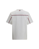 Thom Browne’s oversized T-Shirt combines an essential aesthetic with distinctive details. Made with a ribbed crew neck, it features two side slits that add comfort and movement. An iconic patch stands out on the front, while colorful bands on the back lend an unmistakable touch, discreetly signing off the brand’s style.