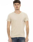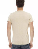 Indulge in the epitome of casual luxury with Trussardi Action’s sleek T-shirt. Crafted to redefine everyday elegance, this beige staple features a sophisticated round neck and a distinctive chest pocket adorned with a unique print, adding an understated edge to your off-duty wardrobe. Perfect for making a bold statement while reveling in unrivaled comfort.