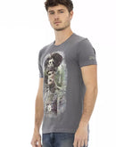 Indulge in the perfect fusion of comfort and style with Trussardi Action’s Gray T-Shirt. Boasting a contemporary vibe, it features a sleek round neck design complemented by head-turning front print that makes a bold statement. Ideal for fashion-forward individuals who appreciate luxury woven into their everyday wardrobe. Embrace Trussardi Action’s commitment to quality and trendsetting aesthetics.