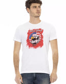 Embrace the bold sophistication of Trussardi Action with this standout White T-shirt. Crafted from a premium blend of cotton and viscose, this tee delivers both comfort and style. The round neck and short sleeves keep it classic, while the striking front print adds an unmistakable edge. Perfect for the fashion-forward individual, this piece is a testament to the blend of contemporary design and timeless appeal that Trussardi Action is renowned for.