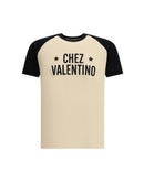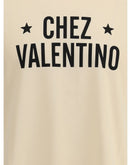 The Chez Valentino T-Shirt by Valentino is an essential garment with a bold style. Made with a ribbed crew neck, it is distinguished by the iconic Chez Valentino signature printed on the front, adding a graphic and recognizable touch. Perfect for completing casual looks with a distinctive accent.