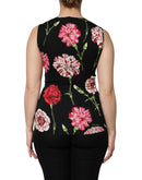 Dolce & Gabbana Black Floral Print Sleeveless Tank Blouse Top
