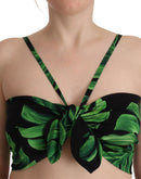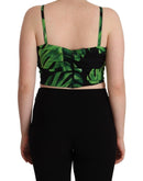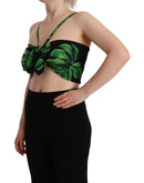 Dolce & Gabbana Black Green Leaf Silk Halter Cropped Top