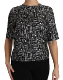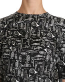 Dolce & Gabbana Black Musical Instruments Print Silk Blouse